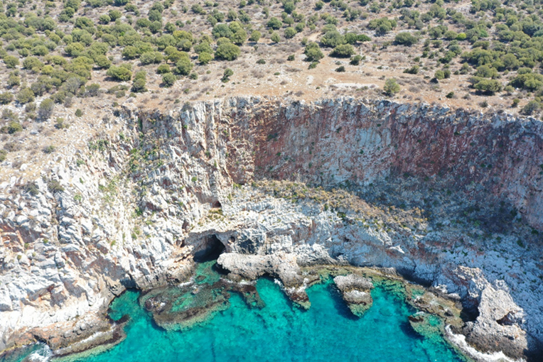 The site consists of multiple interconnected caves (A, B, C, D) formed in limestone cliffs overlooking the sea, and it has produced fossils dating back to the Middle Pleistocene, along with stone tools and animal remains indicating long-term human occupation.